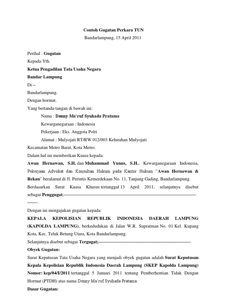 Surat gugatan peradilan tata usaha negara contoh kasus artikel updatedkamis 270706 rektor yang dipecat tempuh upaya hukum ypim digugat rp 3 milyar kemelut antara pejabat ikip mataram yang dipecat dengan yayasan pembina ikip mataram ypim bakal berkepanjangan. Dengan hormat yang bertanda tangan di bawah ini saya. Kepada yth ketua pengadilan agama.