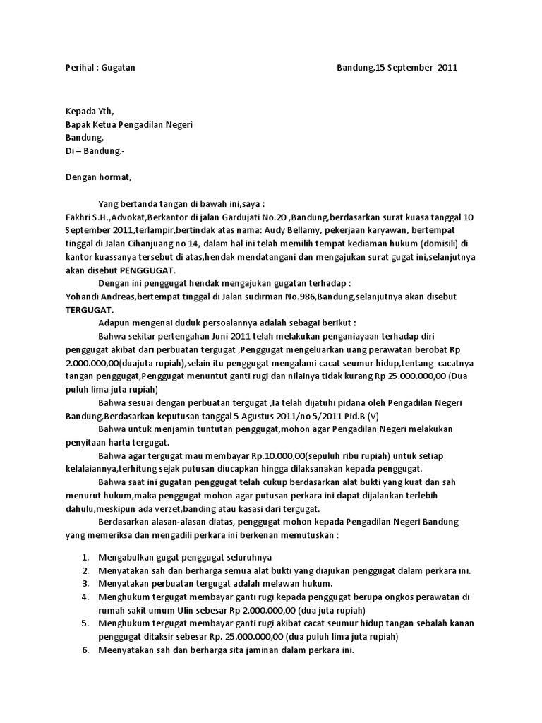 Contoh Surat Gugatan Makalah Id Pada Kesempatan Kali Ini Kami Akan