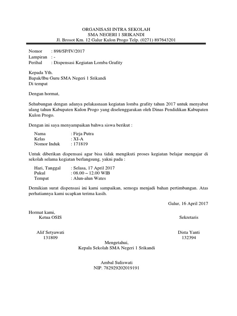 Created For Just One Purpose Contoh Surat Dispensasi