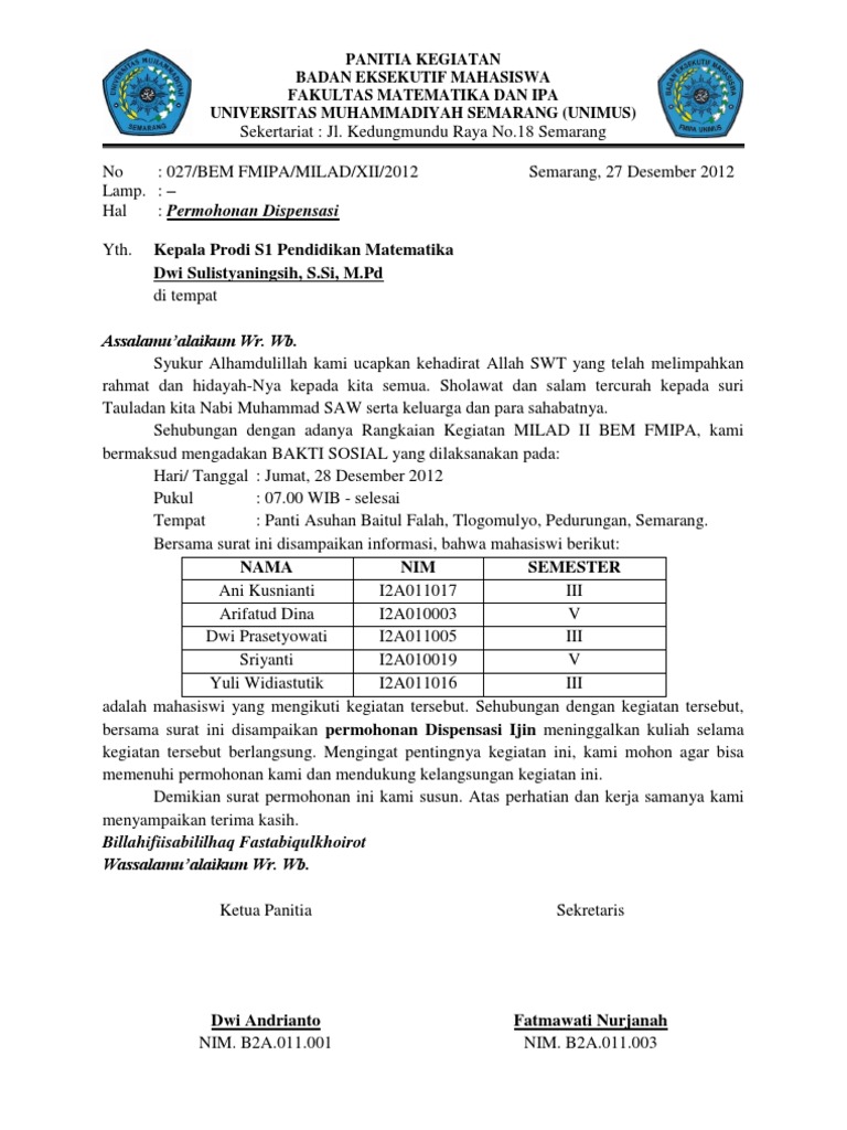 Search Surat Dispensasi Hmj Idslide Net